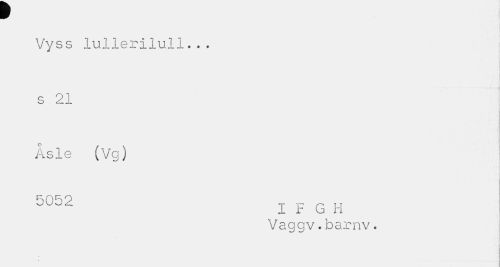 //// w //// Vyss lullerilull... //// I . H //// s 21 //// Åsle (Vg) //// Å //// 5 Q 5 o //// I F G H Vaggv.barnv. ////