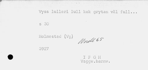 //// Vyss lulleri lull kok grytan väl full... //// s 30 //// Holmestad (Va) 3927 //// Vaggv.barnv. ////