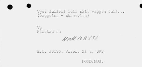 //// Vyss lulleri lull skit vaggan full... (vaggvisa - skämtvisa) //// Vg //// Flistad sn //// E.U. 13136. Visor.. II s. 393 //// NORD. MUS. ////