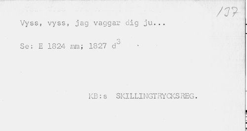//// /J? //// Vyss, vyss, jag vaggar dig ju... jj. //// o //// Se: E 1824 ram; 1827 d° //// KB ; s SKILLINGTRYCKS REG. //// | ¦ ////