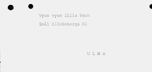 //// Vyss vyss lilla barn Srnål Kläckeberga 61 //// U L M A ////