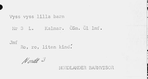 //// I I //// Vyss vyss lilla barn Nr 3 L. Kalmar. GSm. 01 Imf. //// Jmf //// Ro, ro, liten kind. //// ¦ //// NORDLANDER BARNVISOR | ////