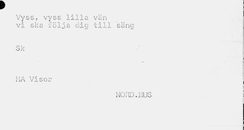 //// v //// Vyss, vyss lilla vän vi ska följa dig till säng //// Sk //// # • //// HA Visor //// NORD.MUS i ////
