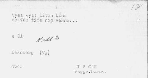 //// /jr ; //// Vyss vyss liten kind //// du får tids nog vakna... s 31 jfotf & //// Leksberg (Vg) //// 4541 I F G H //// Va ggv.barnv. ////