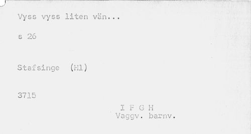 //// Vyss vyss liten vän... s 26 //// Stafsinge (Hl) 3715 //// i i" G H Vaggv. barnv. ////