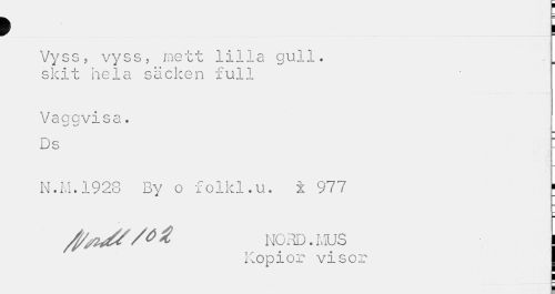 //// > //// Vyss, vyss, mett lilla gull. skit hela säcken full //// Vaggvisa« //// Ds : //// M.M. 1928 By o follcl.u. i 977 • //// % NO®. MUS ! //// Kopior visor I ////