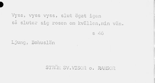 //// f //// Vyss, vyss vyss, slut ögat igen sä sluter sig rosen om kvällen,min van. //// s 46 //// Ljung, Bohuslän //// i i //// I //// STRÖM SV.VISOR o. RAMSOR ////
