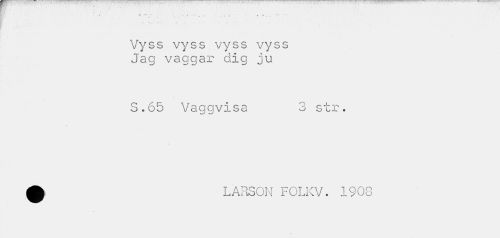 //// * ' * - - .. c • //// Vyss vyss vyss vyss Jag vaggar dig ju //// S.65 Vaggvisa 3 str. //// 0 LARSON FOLKV. 1908 ////
