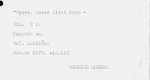 //// "Vyssas o,ussa litet barn - //// IDA , O //// iiljii. v • //// F a ger e cl sn. //// / //// Ref. J.Kålen. Acc.nr 5379, sid.112 //// VARBERG MUSEUM ////