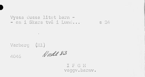 //// > I //// Vyssa cussa litet barn -- en i Skara två i Lund... s 24 //// ¦ //// i //// Varberg (Hl) 4046 //// X Jr G H vaggv.barnv. ////
