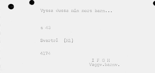 //// ^^ Vyssa dussa min mors barn... //// s 43 //// Svartrå (Hl) 4174 //// I F. G H //// Vaggv.ba rnv * ////