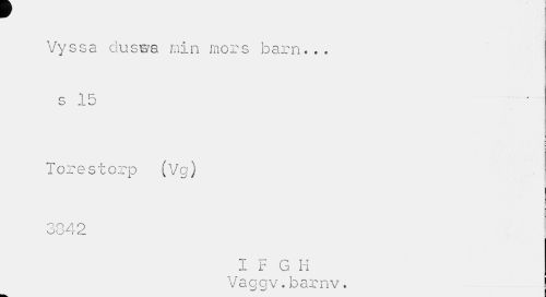 //// Vyssa duswa min mors barn... s 15 //// Torestorp (Vg) //// O A o vJ O t //// 1 F G K //// Vaggv.barnv. //// k. ////