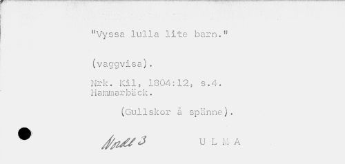 //// A . . ' * ' //// "Vyssa lulla lite barn.n (vaggvisa). //// Nr k. Kil, 1804:12, s.4. Hammarbäck. //// (Guliskor å spänne). //// u L M A ////