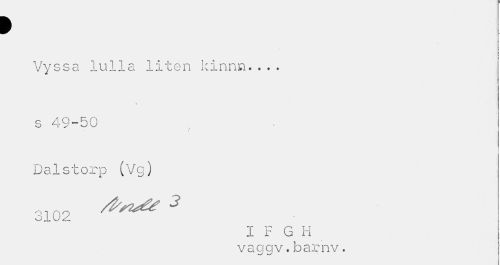 //// > //// Vyssa lulla liten kinnn... //// s 49-50 //// Dalstorp (Vg) //// 3102 ^ //// I F G H //// vaagv.barnv. ////