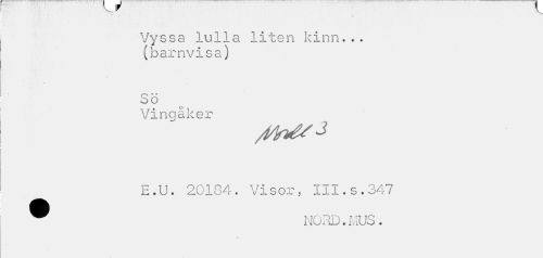 //// s //// Vyssa lulla liten kinn... (barnvisa) //// So //// Vingåker //// E.U. 20184. Visor, III.s.347 //// NOi iD * MUS. ////