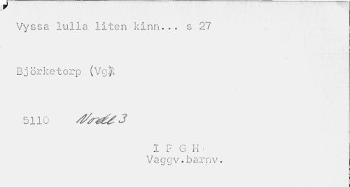 //// tr //// Vyssa lulla liten kinn... s 27 dt //// Björketorp (Vg^l //// O 1 1 //// 1 F G H • //// Vaggv.barnv. ////