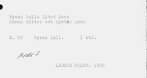 //// > //// Vyssa lulla litet barn Mamma sitter och nystar garn //// S. 59 Vyssa lull. 1 str. //// t //// LARSON FOLKV. 1908 ////
