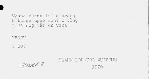 //// > //// Vyssa nanna lille dräng bittida uppe sent i säng tids nog får du vaka //// vaggv. s 303 //// ! //// SWAHN FOLKTRO AUGERUIvl //// A/rtdS & 1926 ////