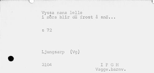 //// "V» //// Vyssa nana lelie I mora blir dä frost å snö... //// s 72 //// Ljungsarp (Vg) //// 3104 I F G H //// Vaggv.barnv. ////