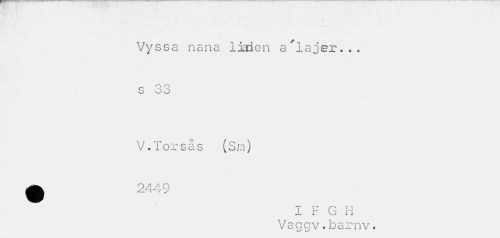 //// Vyssa nana liden a'lajer... //// O o o //// S oo //// V.Torsås (Sm) //// I F G H //// Vaggv.barnv. ////