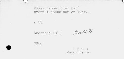 //// \ //// Vyssa nanna litet bar' stort i ändan som en kvar... //// O o o S oo //// Snös torp (Hl) Q 3866 //// Vaggv. barnv. ////