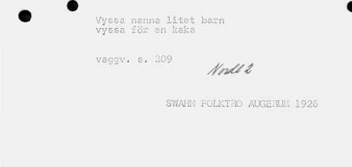 //// Vyssa nanna litet barn vyssa för en kaka //// vaqgv. s. 309 //// SWAHN FOLKTRO AUGERUM 1926 ////