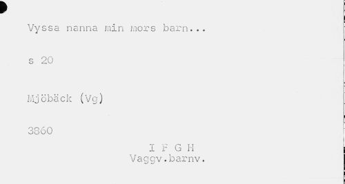 //// Vyssa nanna min mors barn... s 20 //// Mjöbäck (Vg) //// i //// 3360 //// 5274 I F G H //// Vaggv.barnv. ////