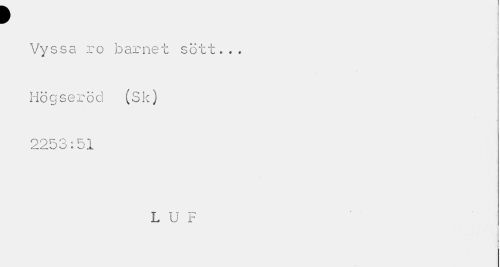 //// 9 //// Vyssa ro barnet sött... //// Högseröd (Sk) 2253:51 //// L U F ////