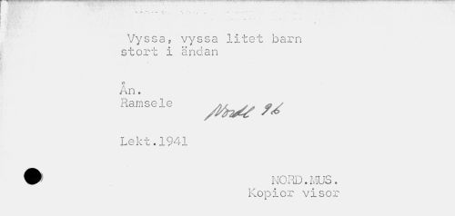 //// ^ m + -yr " — r». . ^ - •• //// % * r //// •i . ... / • //// i ' t'"' '' • * //// Vyssa, vyssa litet barn //// stort i ändan //// i //// An. //// RamS6le U //// Lekt.1941 //// W NORD.MUS. //// Kopior visor ////