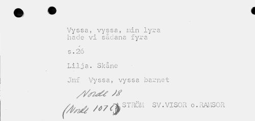 //// Vyssa. vyssa, min lyra hade vi sådana fyra //// s. 26 //// Lilja. Skåne //// / //// Jmf Vyssa. vyssa barnet 'A/7*7 fy STRÖM SV. VISOR o . RAMSOR ////