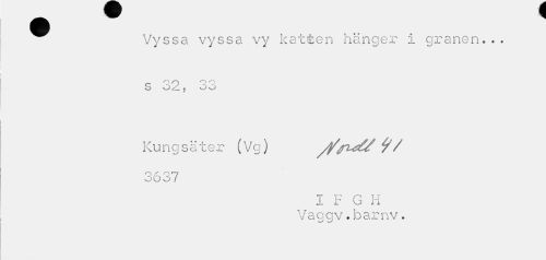 //// ^^ Vyssa vyssa vy katten hänger i granen... //// O o ^ //// S oZ , oo //// Kungsäter (Vg) y/fité/ ty/ //// 3637 //// 2108 I F G H //// Vaggv.barnv. ////
