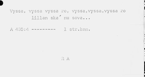 //// ¥ //// Vyssa, vyssa vyssa ro, vyssa,vyssa,vyssa ro //// lillan ska' nu sova... //// A 435:4 --- 1 str.korn. //// i //// il A ////