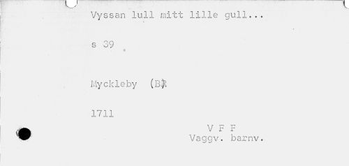 //// Vyssan lull mitt lille gull... //// ? //// s 39 //// I I I 1*1 //// Myckleby (b£ 1711 //// • V F F //// Vaggv. barnv. ////