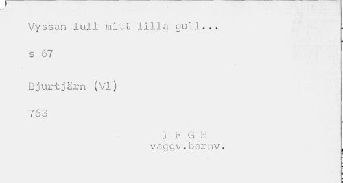 //// Vyssan lull mitt lilla gull... s 67 //// t //// Bjurtjärn (VI) 763 //// I F G H //// vaggv.barnv. , //// ¦ //// i ¦ ////
