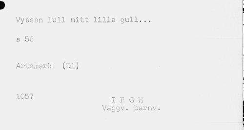 //// w i //// ¦ //// Vyssan lull mitt lilla gull... s 56 //// Artemark (Dl) //// 1007 T* • r T //// 1 r b h //// Vacqv. barnv. ////