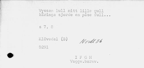 //// ¦ //// Vyssan lull mitt lille gull käringa sjorde en påse full... //// s 7 p B //// Klövedal (B) /j/^Jé 5291 //// Vaggv.barnv. ////