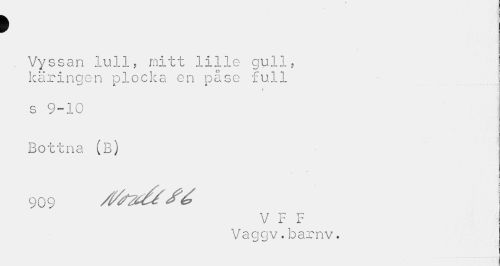 //// > //// . Vyssan lull, mitt lille gull, ! //// käringen plocka en påse full //// s 9-10 Bottna (B) //// 909 //// V F F //// Vaggv.barnv. ////