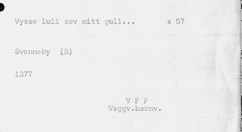//// f //// Vysse lull sov mitt gull... s 57 //// Svenneby (B) j //// 1377 //// V F F • I //// Vaggv.barnv. ////