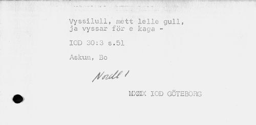 //// *• * ' - • ' '•' - , ¦ ... //// " - ... . . .- . //// Vyssilull, rnett lelle gull, ja vyssar för e kaga - //// IOD 30:3 s.51 //// Askum, Bo //// ^ MXBSX IOD GÖTEBORG ////