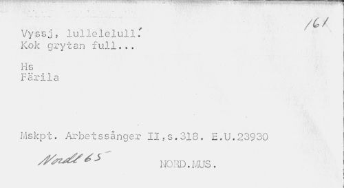 //// • * 'T* * ' • //// V * , //// • — v.• - .. -v.,. .. - . = * • . . • //// Vyssj, lullelelull. Kok gry tan full... //// Hs //// tärila //// Mskpt. Arbetssånger II,s.318. E.U.23930 //// éJ> NO HD. MUS . //// i i ////