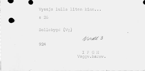 //// Vyssja lulla liten kinn... //// S o //// Bollebygd (Vc) //// 3 //// 924 //// I F G H Vaggv.barnv. //// \ //// ^—- A ////