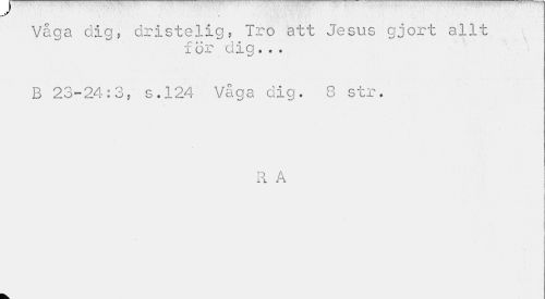 //// Våga dig, dristelig, Tro att Jesus gjort allt //// for dig... //// B 23-24:3, s.124 Vaga dig. 8 str. //// R A //// "f //// k. ////