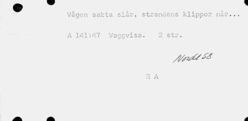 //// Vågen sakta slår, strandens klippor når... A 141:47 Vaggvisa. 2 str. //// R A ////