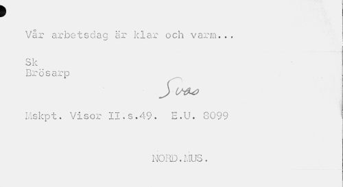 //// p //// Vår arbetsdag är klar och varm... | //// Sk //// Brösarp //// Mslcpt. Visor II.s.49. E.U. 8099 //// NORD. MUS. ////