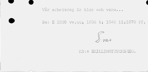 //// Vår arbetsdag är klar och varm... //// • , p 1 O OR , ,, , c 1 OOA U < 1 O/i f) 4 . 1 P7H -P-P //// oG . il luoO VV ? f iuoO k ? iu^rU J_± , i.o / U n > //// r //// KB:s SKILLINGTRYCKSREG. ////