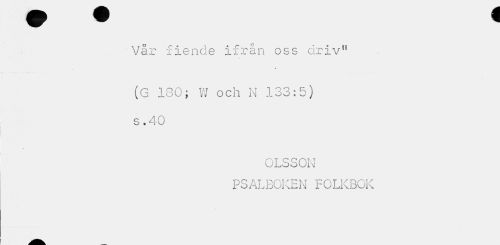 //// Vår fiende ifrån oss driv" //// (G 180; W och N 133:5) s .40 //// OLSSON PSALBOKEN FOLKBOK ////