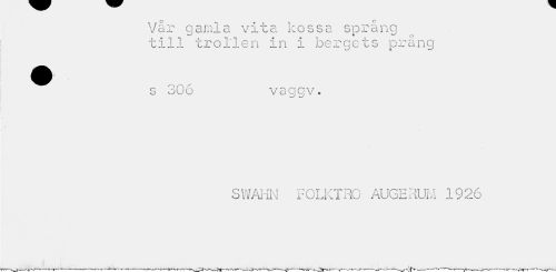 //// Vår gamla vita kossa språng till trollen in i bergets prång //// s 306 vaggv. //// SWAHN FOLKTRO AUGERUM 1926 //// A' ////