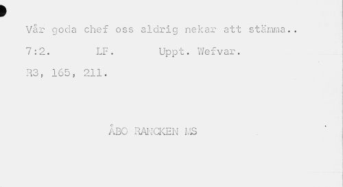 //// p //// Vår goda chef oss aldrig nekar att stämma.. 7:2. LF. Uppt. Wefvar. //// I //// 165, 211. //// 1 //// ABC RANCKEN MS //// ... . i >m i ¦¦¦ i J //// BB ////