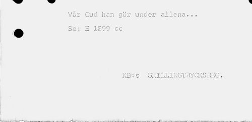 //// Vår Gud han gör under allena... //// •Se: E 1899 cc //// KB:s SKILLINGTRYCKS REG. ////