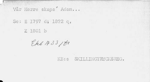 //// sS , .: yJ ¦¦>, //// Vår Herre skapa' Adam... //// Set E 1797 d» 18?2 q, Z 1801 b //// KB: s SKILLINGTRYCKS REG. ////